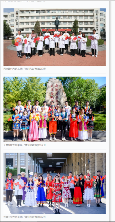 花开津城石榴红,团结奋进心向党。参与本次拍摄的高校共计15所,涉及500余名各民族师生。他们身穿民族服装,歌唱青春,歌唱祖国,唱响青春梦想,礼赞时代华章!在新的百年征程上,他们牢记嘱托,踔厉奋发,勇毅前行,用实际行动表白祖国母亲,向党的二十大献礼!