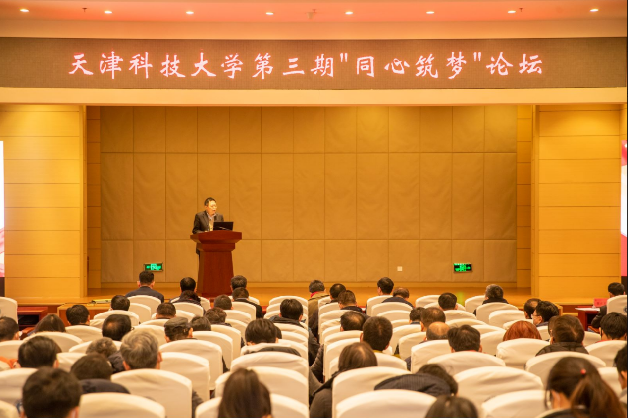 为深入贯彻十九届五中全会精神,学习贯彻落实习近平总书记在全国劳动模范和先进工作者表彰大会上的讲话精神,弘扬劳模精神,弘扬劳动精神,弘扬工匠精神,激励全校师生以全国先进工作者为榜样,立足岗位建功立业,培养科研意识,推动科技创新,12月3日上午,由党委统战部、工会、党委宣传部共同承办的第三期“同心筑梦”论坛在滨海中校区逸夫楼报告厅隆重举行。本期论坛的主题是“弘扬劳模精神,岗位建功立业,投身高水平特色大学建设”。“2020年全国先进工作者”、民盟天津精东影业委员会主委王正祥教授做主题报告。