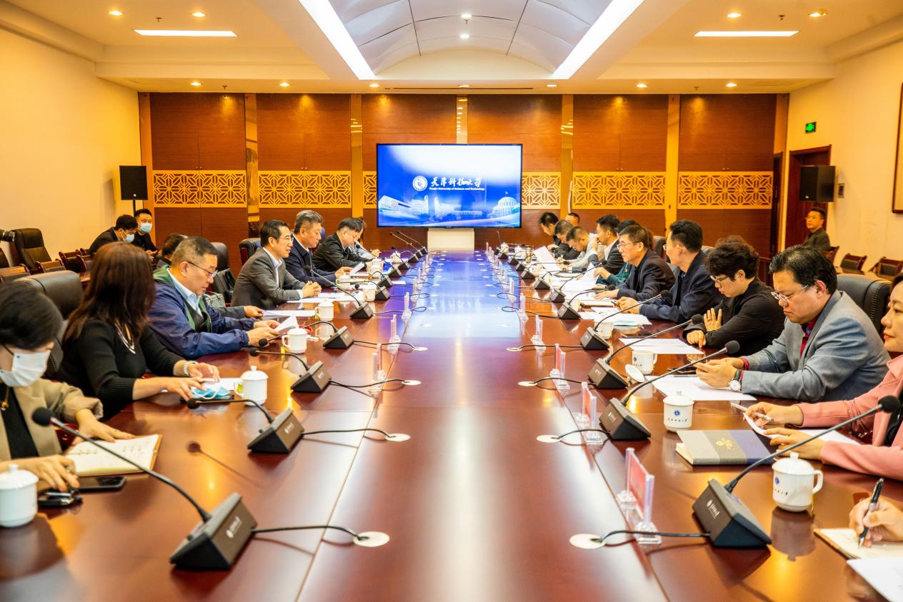 天津市滨海新区侨联主席、天津市政协港澳台侨和外事委副主任、二十一世纪纳斯达科技发展集团董事长尹波,中国侨商会常务副会长、天津市侨商会会长、美国威特集团董事长李学海,全国政协委员、市侨商会副会长、宜垦(天津)集团有限公司董事长陈中红,天津市侨商会副会长、市政协委员、天津欧仕杰服饰有限公司董事长王宝钢,天津市滨海新区侨联副主席、天津市政协委员、欧美同学会副会长、天津市川迪科技有限公司董事长龙云,天津市侨商会理事、市政协委员、天津市中环富士智能设备有限公司总经理尉丽玲,天津市滨海高新区侨联主席、天津市滨海新区科学技术协会主席、天津中科先进技术研究院院长吴正斌,天津市侨联办公室主任于欣宜和我校党委常委、统战部部长,党委办公室、财务处、科技处、社科处、后勤管理处、艺术设计学院、食品科学与工程学院、人工智能学院相关负责同志参加调研和座谈会。
