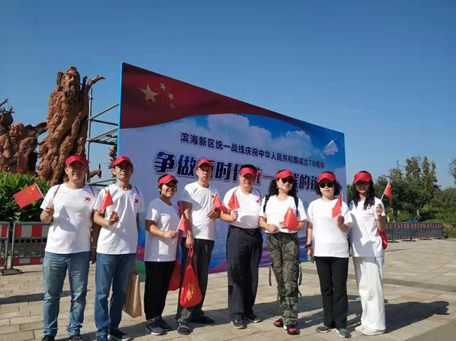 为庆祝新中国成立70周年,9月25日滨海新区统战部主办了统战各界人士迎国庆健步行活动,我校7名民主党派和无党派人士参加活动。