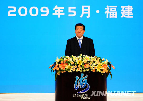 受胡锦涛总书记的委托,贾庆林代表中共中央,对首届海峡论坛的举办表示热烈祝贺。他说,过去一年来,在两岸各界广大民众的共同努力下,两岸关系发生了历史性转折,走过了不平凡历程。进一步推动两岸关系和平发展,是两岸同胞共同的愿望,也是我们大家应当共同承担的历史重任。新形势下推动两岸关系和平发展,最重要的是更加有力地推动两岸同胞大交流,促进两岸各界大合作,把两岸交流合作推向最广泛的领域、推向基层,鼓励最广泛的基层民众参与到两岸交流合作中来,增加更多的直接交往,努力使两岸同胞感情更融洽、合作更深化。